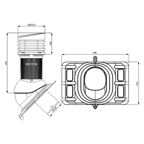 - Izvads pieejams gatavā montāžas komplektācijā: ventilācijas izvads, atbilstošais jumta pieslēgums/pamatne, līmeņrādis, pieslēguma caurule, butila blīvējums, 10 gb skrūves izvada krāsā.